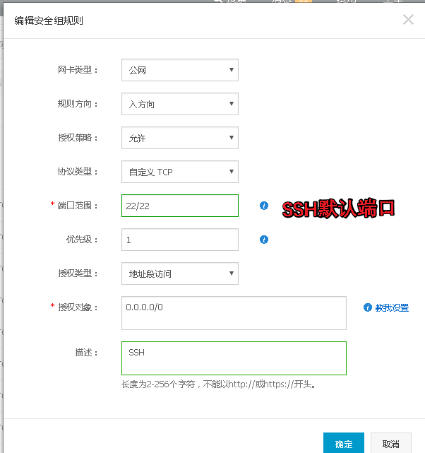 端口没有打开吧,需要在安全组中配置ssh端口;阿里云安全组配置可以参考: