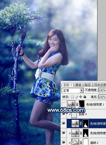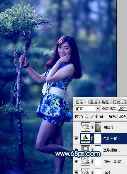 以上就介绍了Photoshop给树林人物加上梦幻的暗调蓝青色,包括了Photoshop方面的内容,希望对photoshopjrs看球网直播吧_低调看直播体育app软件下载_低调看体育直播有兴趣的朋友有所帮助。