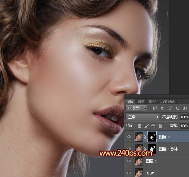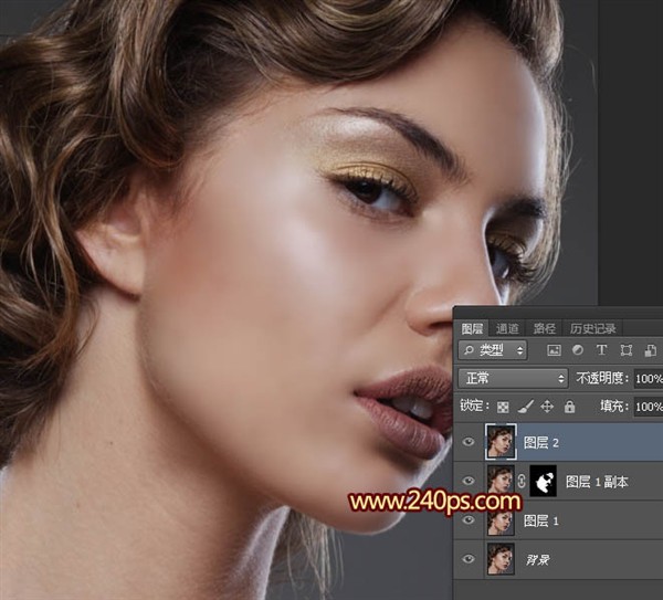| 15、把“图层1副本2”移到“光滑”图层的下面,如下图。