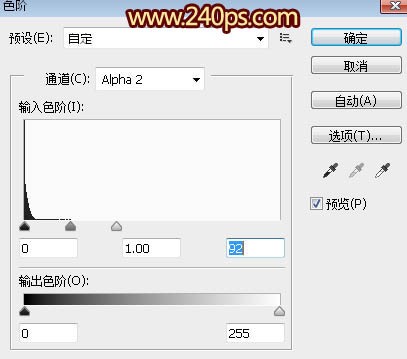 2”通道,按Ctrl + L 调整色阶,同样调亮一点,参数及效果如下图。 |