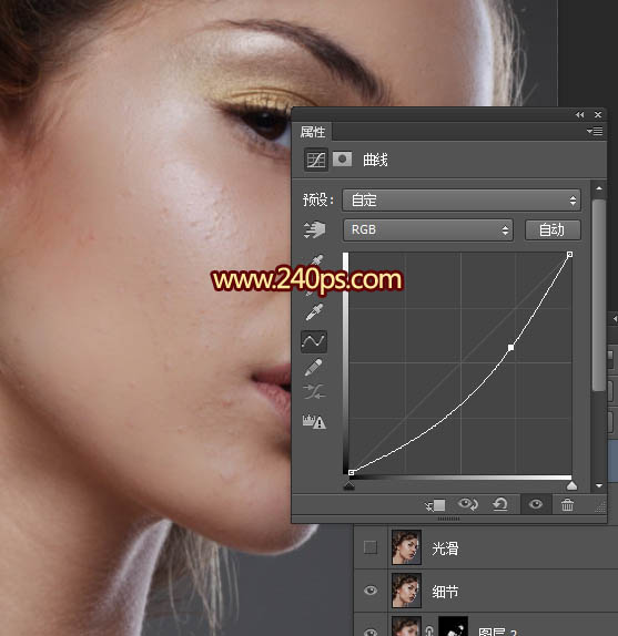 | 27、点RGB通道返回图层面板,把“光滑”图层前的眼睛点掉,隐藏图层。