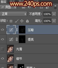 | 22、点RGB通道返回图层面板,把“光滑”图层混合模式改为“变暗”,效果如下图。