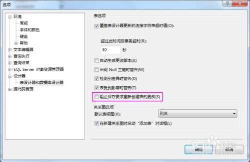 去掉【阻止保存要求重新创建表的更改】前面的勾,然后确定