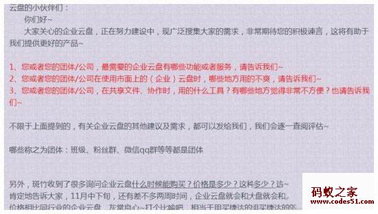 在360云盘官方社区发布的360企业云盘消息来看,360企业云盘目前正在研发过程中,希望广大的用户能提出自己的想法和意见,以便企业云盘服务的功能能更加的完善。