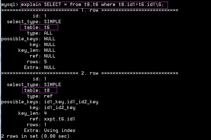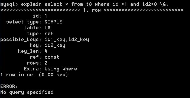 select * from t8 where id1=1 and id2=0;