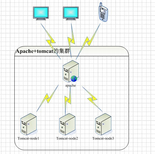 apache+tomcat;ngnix+tomcat;lvs+ngnix+tomcat;大家比较熟悉的是前两种。(lvs负责集群调度,nginx负责静态文件处理,tomcat负责动态文件处理[最优选择])。 以apache+tomcat集群为例,简单说一下: