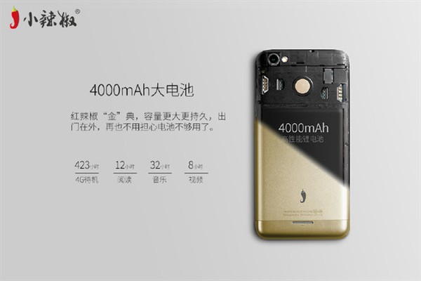 作为小辣椒的"经典之作",红辣椒"金"典外形设计简洁大方,做工媲美市场上的高端机型。高端的工艺设计保证了细腻的握持手感,外形纤薄时尚的金属机身尽显大气高贵,是当之无愧的"外观实力派"。同时,在精致的外观下其搭载了展讯SC9832处理器,辅以2G+16G内存组合,配备800W+200W摄像头组合,拥有5.0英寸全视角oncell多点触屏,在系统方方面,红辣椒金典搭载的是安全可靠的YunOS系统,为手机用户保驾护航。另外,还配备4000mAh的大电池续航能力强,凭借这一点就足以秒杀同等价位的其他产品,并且售价只要599,值得广大用户拥有。