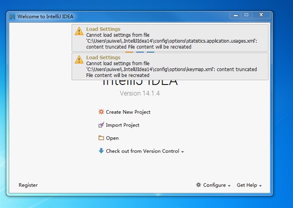 忽略,和eclipse一样,这错是配置丢了,开机后一般会报这种错,计算机没有加载,或者文件已经损坏。启动一次后下次就好了。